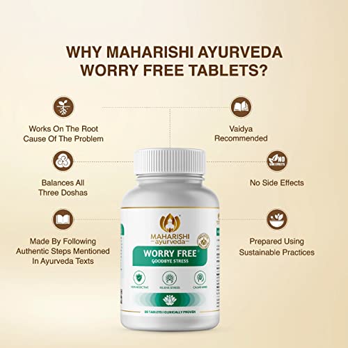 • NATURAL INGREDIENTS: Maharishi Ayurveda Worry-Free is an Ayurvedic medicine for occasional stress and anxiety that is made from powerful ayurvedic herbs such as Ashwagandha Jatamansi Brahmi Giloy etc. Ashwagandha is well known Ayurvedic herb that helps ma