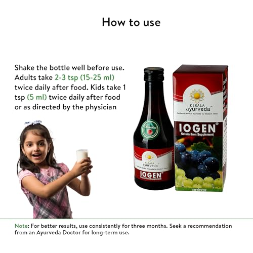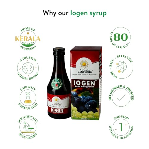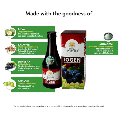Kerala Ayurveda Iogen 200ml | Natural Iron Supplement | Improves Hemoglobin level | Herbal Iron Supplement | Non-Constipating Iron Tonic | Anemia Syrup | Stimulates Appetite | No Artificial Flavors | With Bilva, Satavari, Draksha, Amla, and Annabedi |