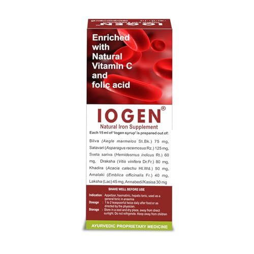 Quantity: 200 ml; Item Form: Syrup; Iogen enriched with iron rich herbal ingredients that are helpful in treating iron deficiency and anemia. It also alleviates anemic condition by increasing hemoglobin levels in blood and renormalizing appetite.