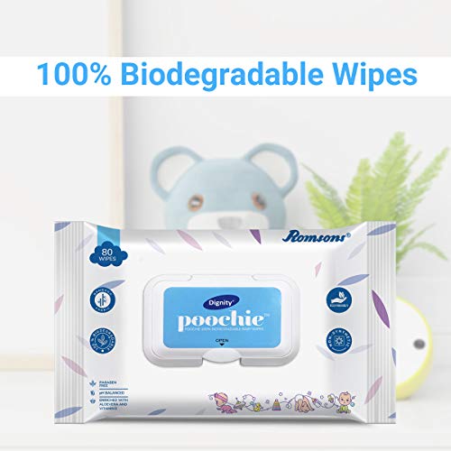 DIGNITY Poochie 100% Biodegradable Clear Color Baby Wipes (150 x 200 mm) -Pack of 6, 480 Wipes