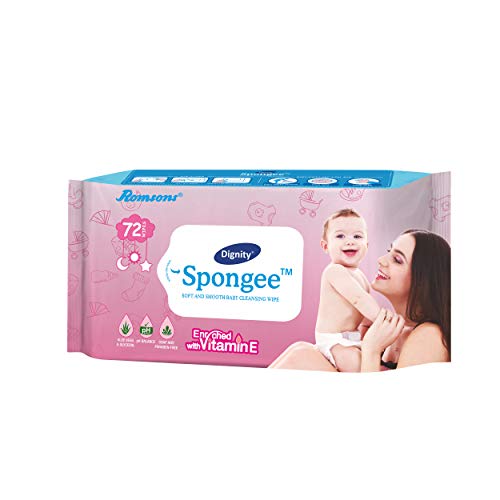 DIGNITY Sponge Baby Wet Wipes, 150 x 200 mm, 72 Wipes/Pack (White, Pack of 3, 216 Wipes)
