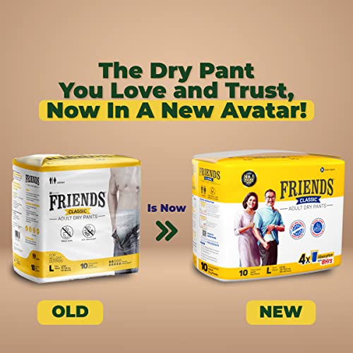 Friends Classic Adult Diapers Pants Style - 30 Count (Large) with odour lock, Unisex, Leakproof, Elastic Waist and Anti-Bacterial Absorbent Core - Waist Size 30-56 inch; 76-142 cm