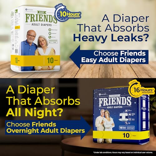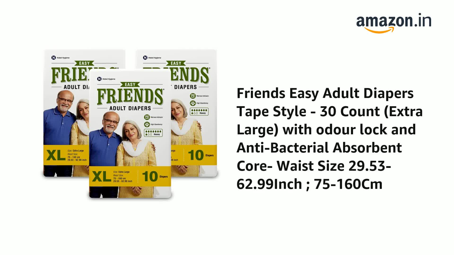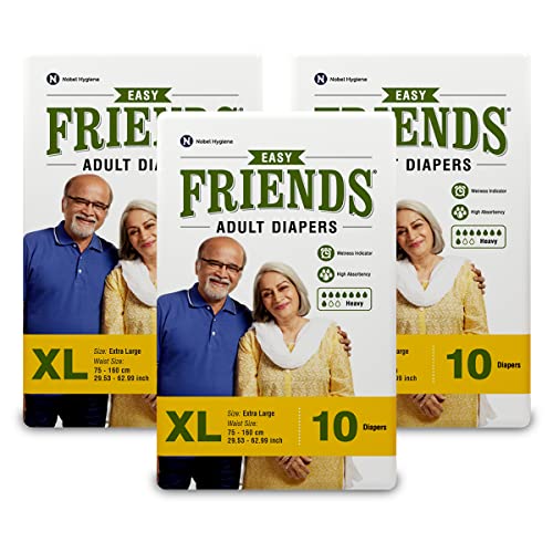 Friends Easy Adult Diapers Tape Style - 30 Count (Extra Large) with odour lock, Unisex, Leakproof, Wetness Indicator and Anti-Bacterial Absorbent Core- Waist Size 35.43-65.35 inch; 90-166 cm