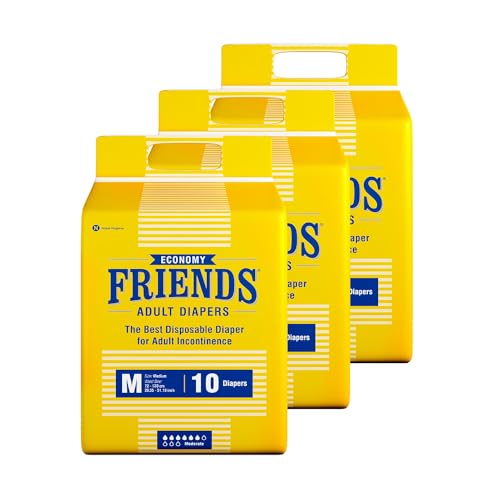 Friends Economy Adult Diapers Tape Style - 30 Count (Medium) with odour lock, Unisex, Leakproof, Wetness Indicator and Anti-Bacterial Absorbent Core - Waist Size 28.35-51.18 inch; 72-130 cm