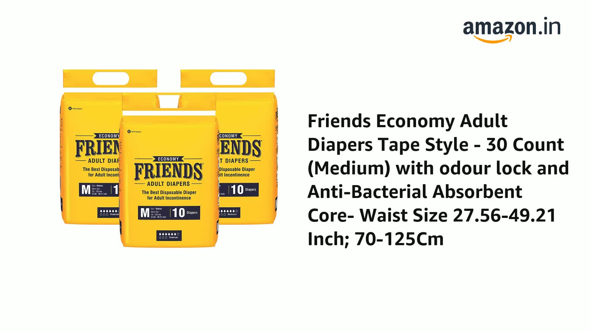 • Friends Adult Diapers medium size tape style is also available in sizes L and XL.