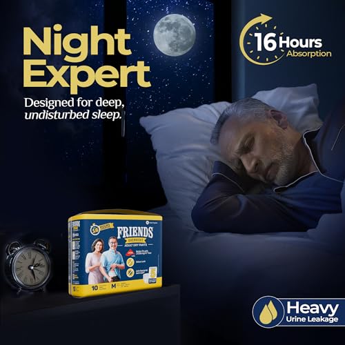 Friends Overnight Adult Diapers Pants Style - 20 Count (Medium) with odour lock, Unisex, Leakproof, Elastic Waist and Anti-Bacterial Absorbent Core - Waist Size 25-48 inch; 63.5-122 cm