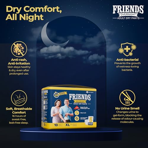 Friends Overnight Adult Diapers Pants Style - 60 Count (Extra Large) with odour lock, Unisex, Leakproof, Elastic Waist and Anti-Bacterial Absorbent Core - Waist Size 30-56 Inch; 76-142 cm