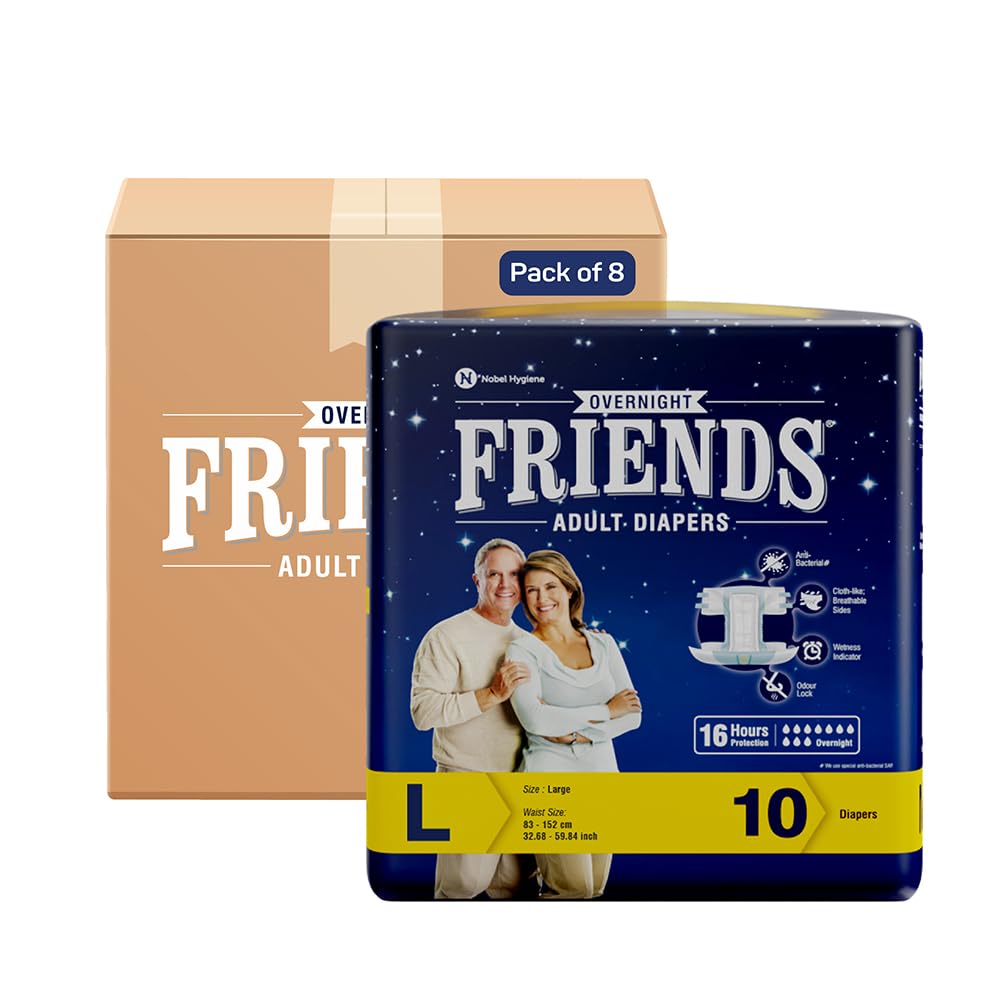 • Friends Adult Diapers large size tape style is also available in sizes M and XL.