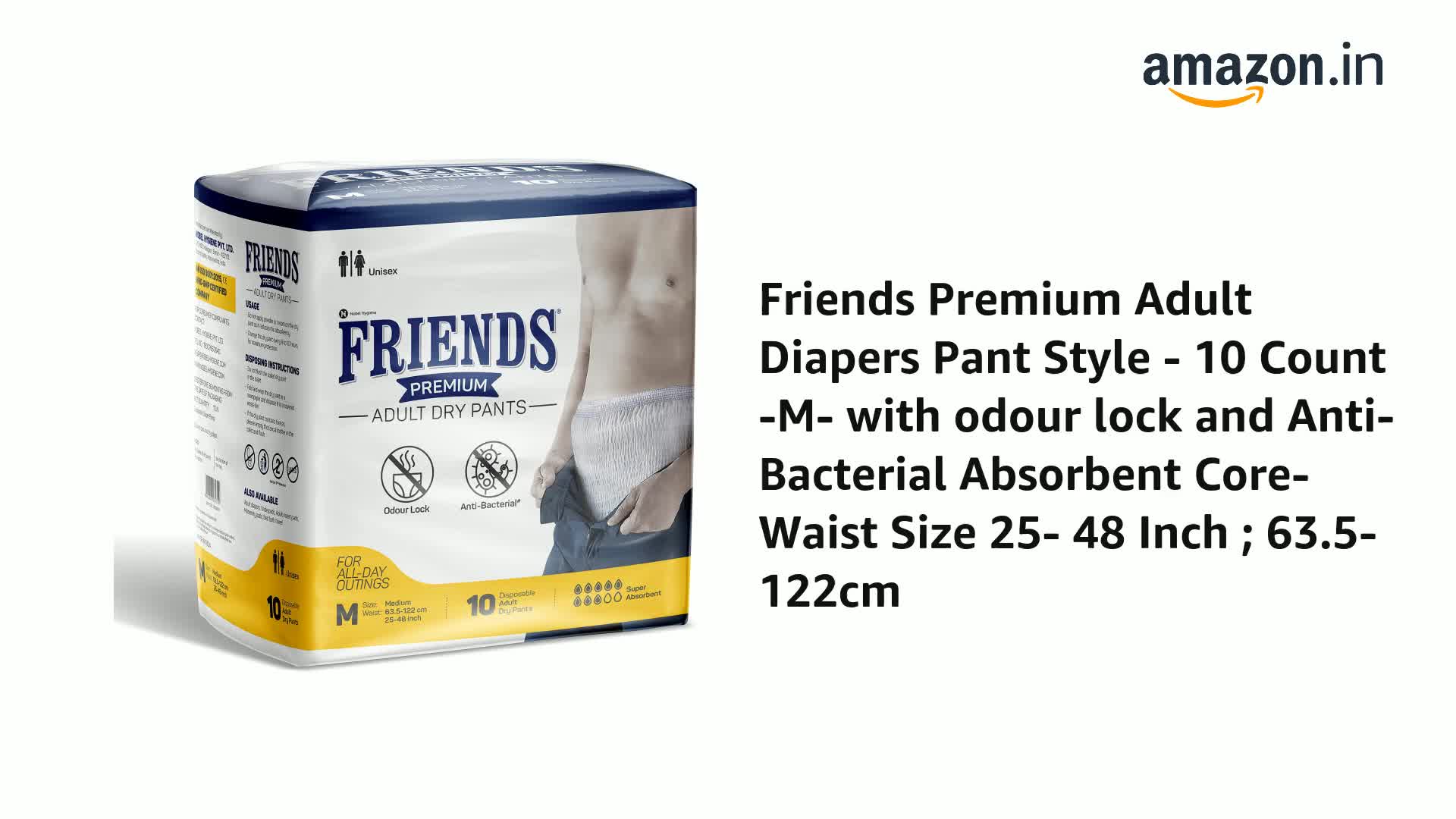 • Friends Adult Diapers medium size pants with 12 hours of protection are also available in sizes L and XL.
