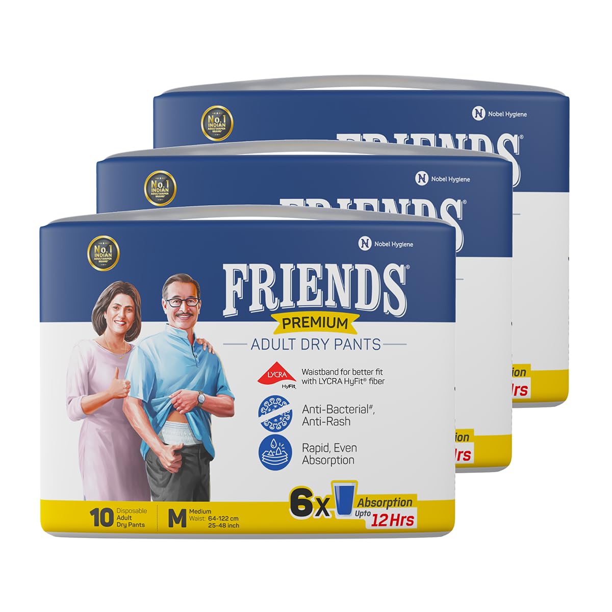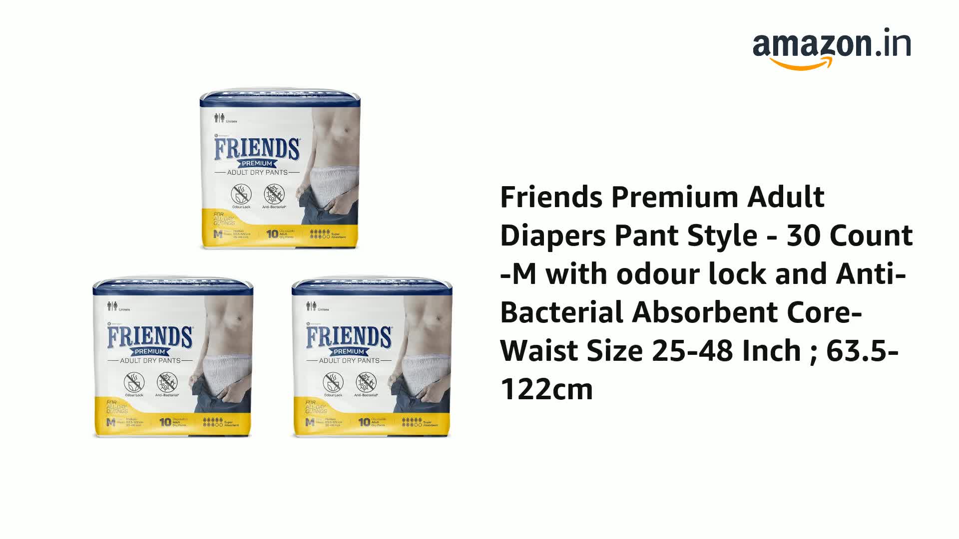• Friends Adult Diapers medium size pants with 12 hours of protection are also available in sizes L and XL.