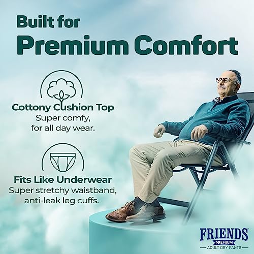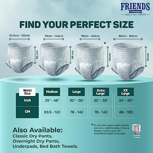 Friends Premium Adult Diapers Pants Style - 30 Count (Medium) with odour lock, Unisex, Leakproof, Elastic Waist and Anti-Bacterial Absorbent Core - Waist Size 25-48 inch; 63.5-122 cm