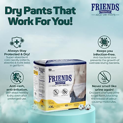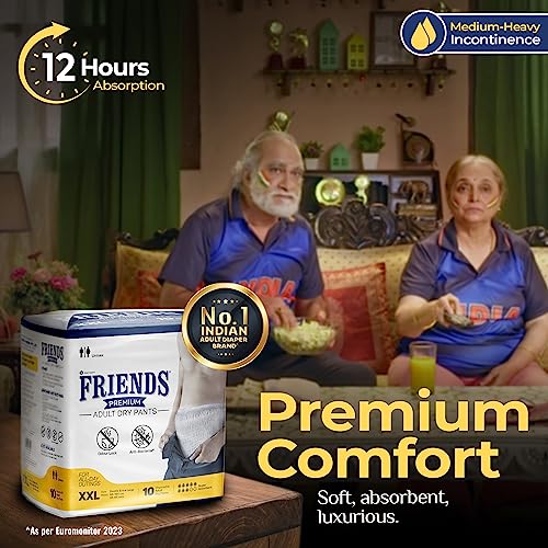 • Friends Adult Diaper XXL size in pant style with 12 hours of protection are also available in sizes M L and XL.