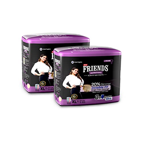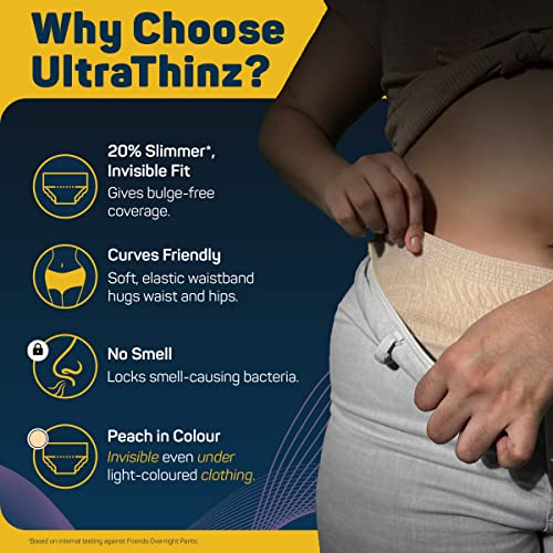 Friends UltraThins Slim Fit Adult Diapers (Dry Pants) for Women - Extra Large – 18 Count - with thin design, peach colour, and anti-rash - Waist Size 30-56 Inch ;76-142 cm