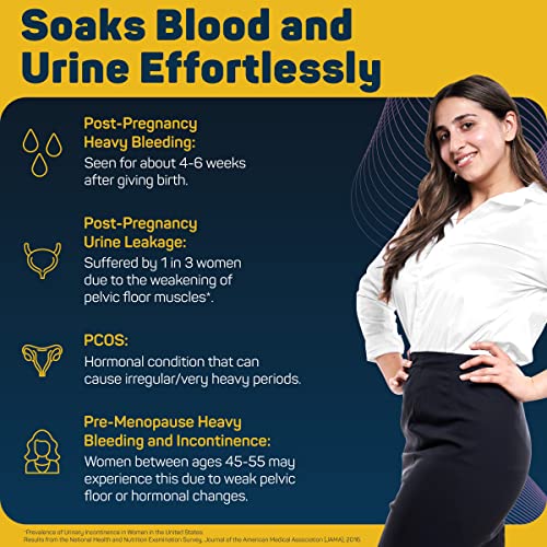 • Absorbs Blood and Urine: Meant for those suffering heavy blood flow or light urine leakage due to menopause pregnancy obesity UTI etc.