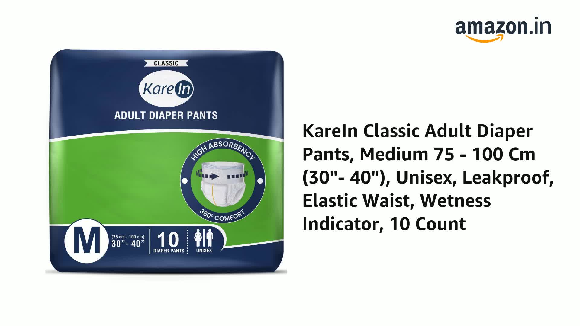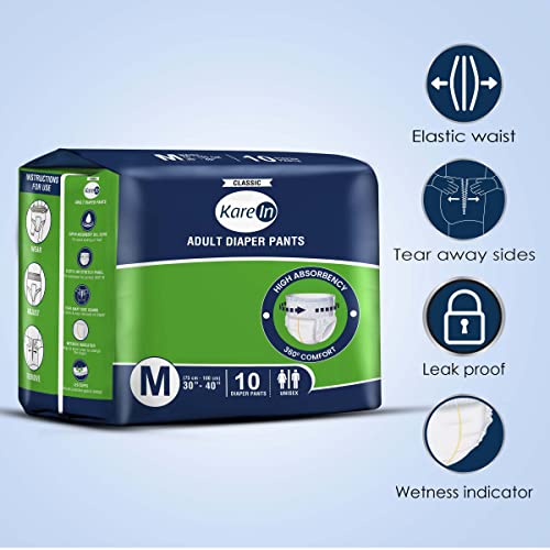 KareIn Classic Adult Diaper Pants Medium 75 - 100 Cm (30"- 40") Unisex Leakproof Elastic Waist Wetness Indicator 10 Count