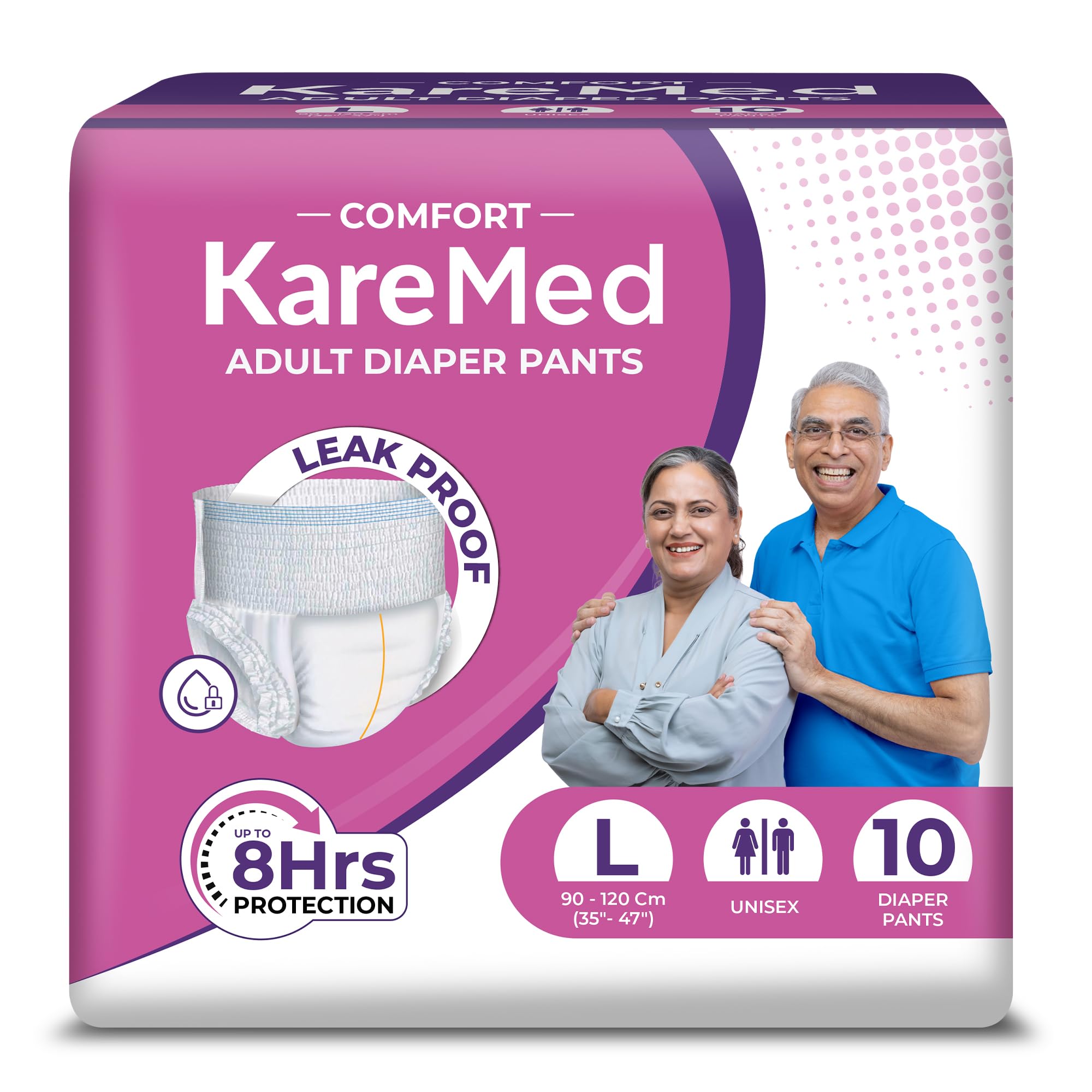 KareMed Comfort Adult Diaper Pants, Large 90-120 Cm (35"- 47"), 10 Count, Unisex, Leakproof, Elastic Waist, Wetness Indicator
