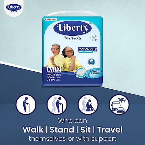 Liberty Popular Adult Diapers, Tape Style, Medium (M) Size, 60 Count, Waist Size (76-101cm | 30-40 inches), Unisex, High Absorbency, Leak Proof, Wetness Indicator, Pack of 6, 10 count/pack