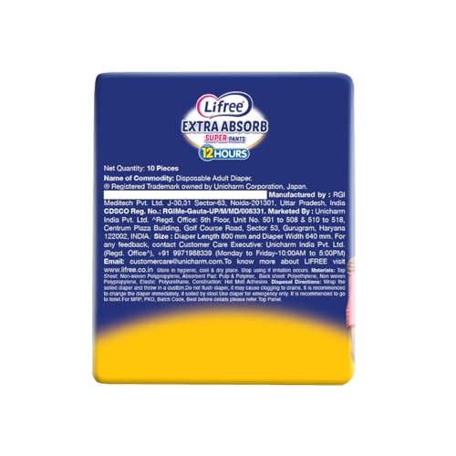 Lifree adult pant style diaper is easy to use like an underwear and prevents leakage upto with 12 hrs