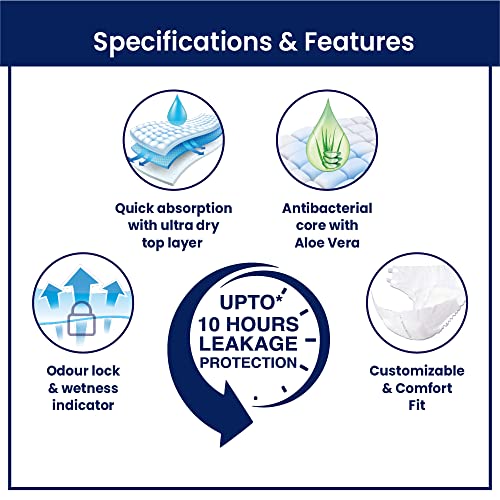 TATA 1MG Unisex Adult Diaper Tape Style, Soft Cottony Leak Proof With Antibacterial Core Diaper For Adults To Get Extra Care, Comfort And Freedom (Style: Medium, Pack Of 10)