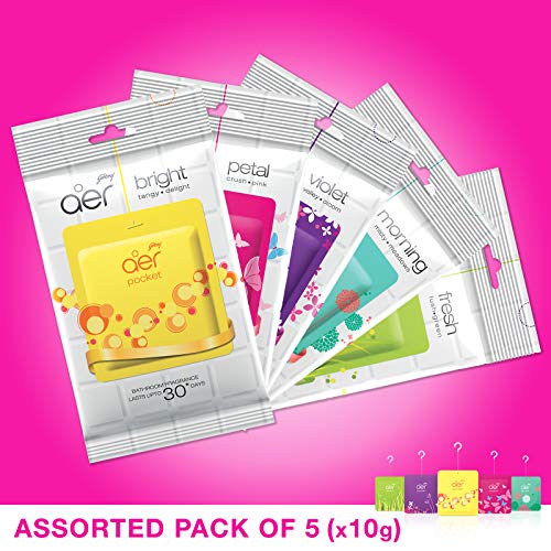 Godrej aer Smart Matic - BLUETOOTH ENABLED Automatic Air Freshener Kit Alive 225ml (134g)India's 1st mobile controlled smart home fragrance that is Bluetooth enabled and allows you to set custom spray schedules.Godrej aer pocket Bathroom Air Fragrance - Assorted Pack of 5 (5x10g)Pack of 5 Godrej aer pocket - pack of 5 is an assorted pack of 5 unique bathroom air fresheners. It contains one each of our variants - Misty Morning Meadows Fresh Lush Green Bright Tangy Delight Violet Valley Bloom and Petal Crush Pink. You can now try them all and choose the one that delights you the most. Godrej aer pocket Say hello to Godrej aer pocket a range of bathroom air freshener available in 5 delightful fragrances. Its unique power gel technology keeps your bathroom fragrant for 3-4 weeks and ensures that its fragrance reaches every corner of your bathroom. A must have stock item in your pantry & toilet Godrej aer pocket is so easy to use that you simply have to unwrap the packet and hang it with the hook provided. That's it you are done. Godrej aer pocket works 24x7 without any effort so you can walk-in to a refreshing fragrance every-time you step into your bathroom.