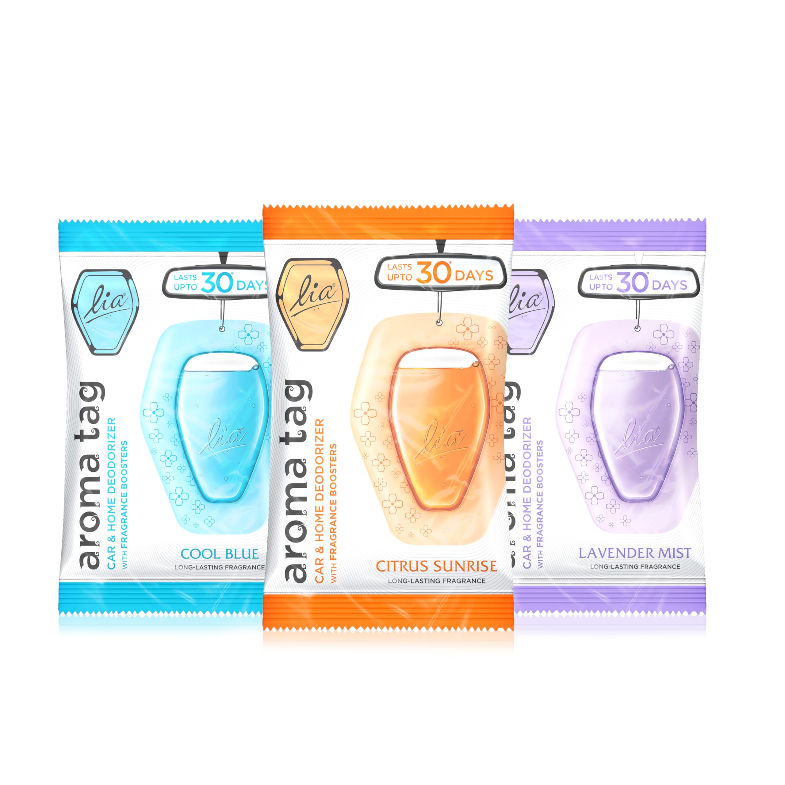Elevate every journey and living space with this thoughtfully curated combo of Lia Aroma Tags. Each pack includes three unique fragrances Lavender Mist Citrus Sunrise and Cool Blue designed to refresh relax and rejuvenate your senses.