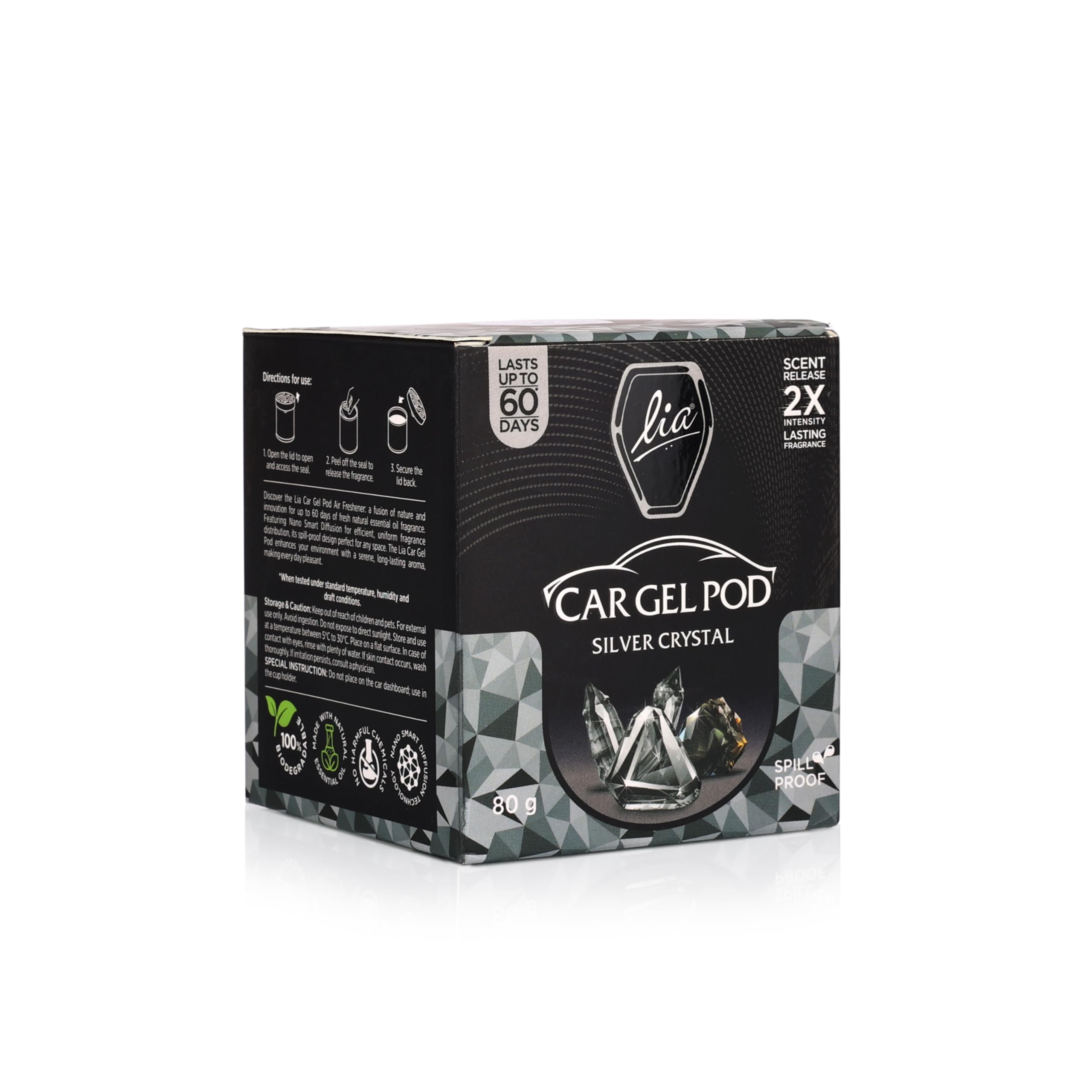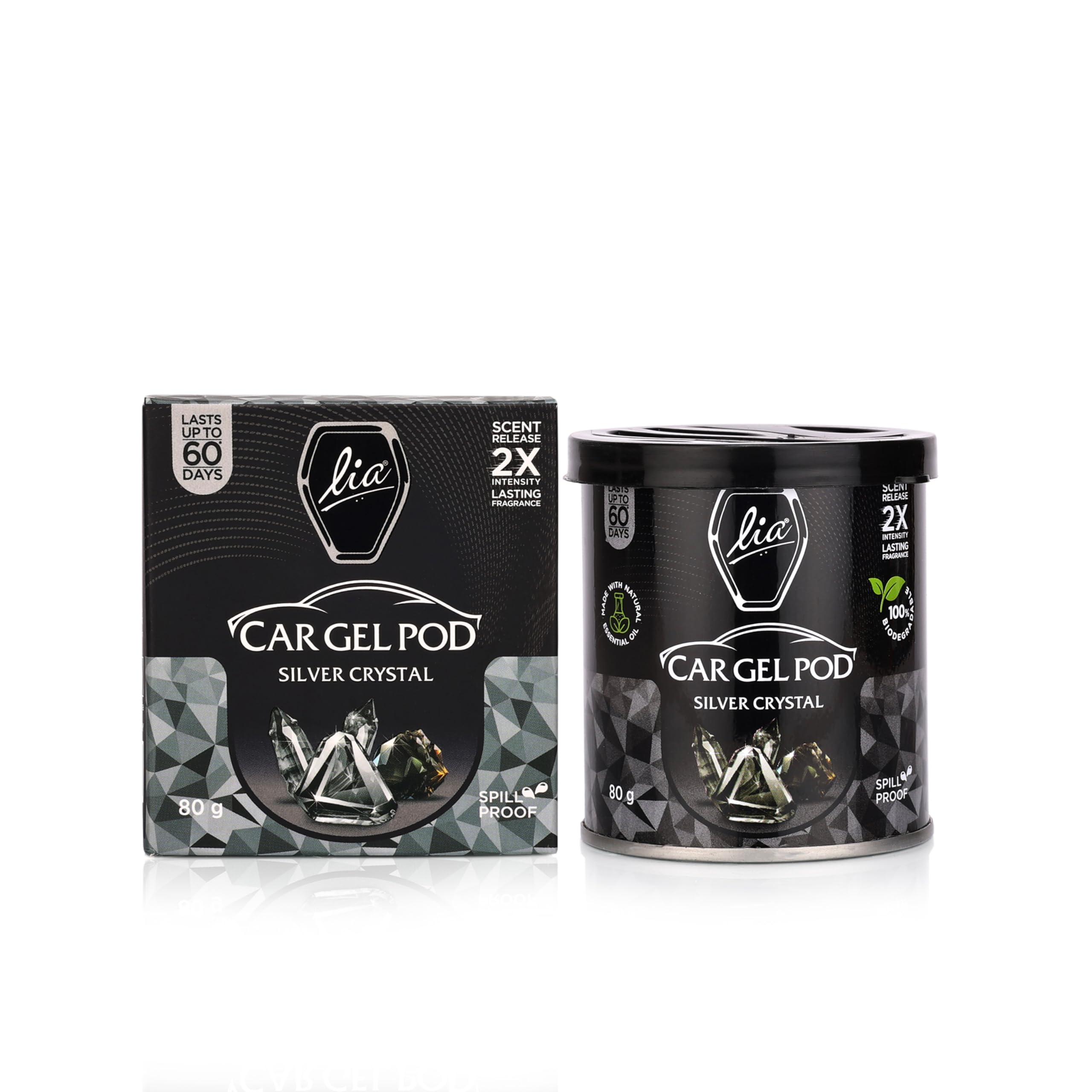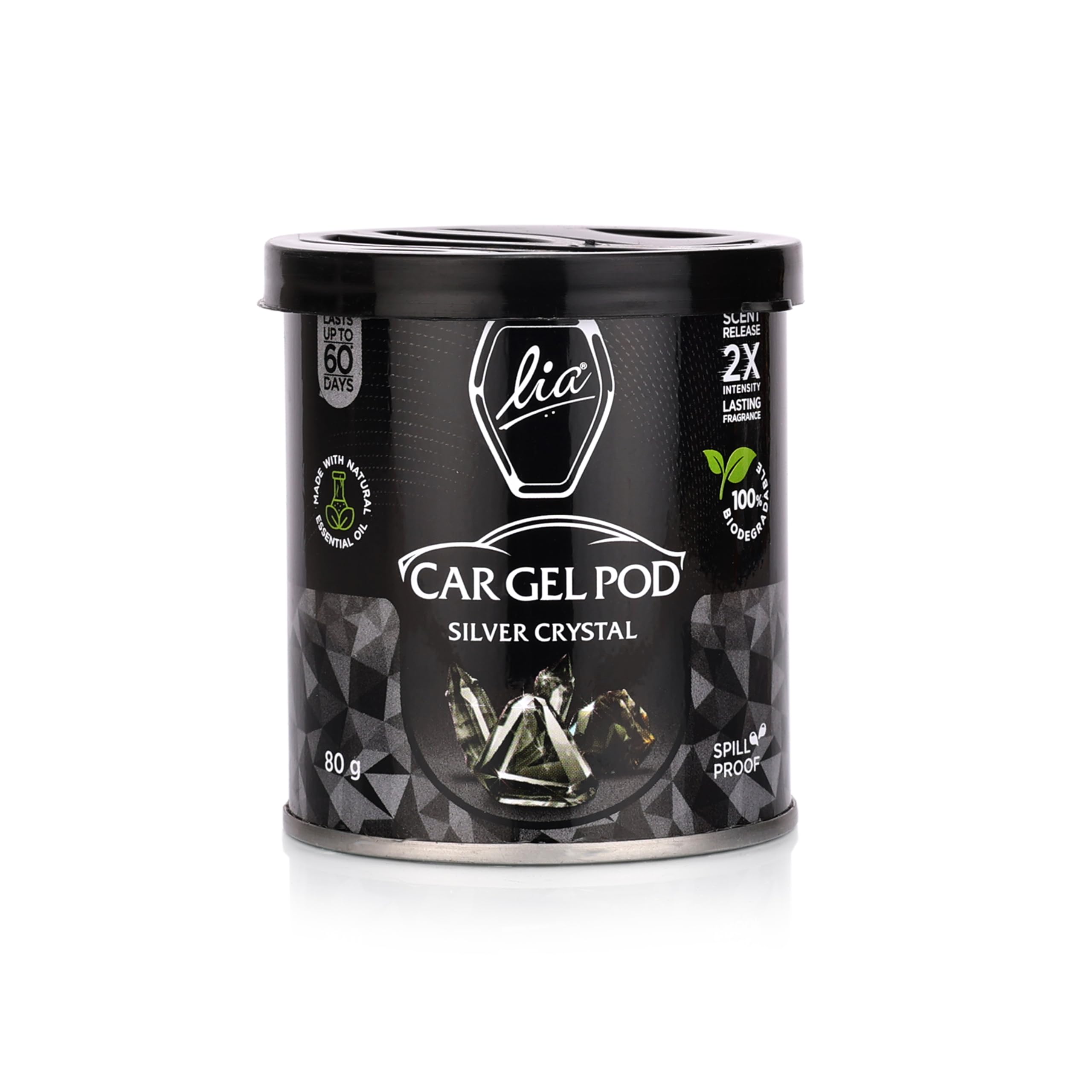 Experience elegance on the move with Lia Gel Pod Silver Crystal. This sophisticated aroma featuring crisp notes and subtle floral hints is packed in a durable aluminum container that complements any car interior. Designed for consistent fragrance release over 30 days it refreshes your drive while effectively eliminating lingering odors. A refined choice for those who appreciate clean classy scents.