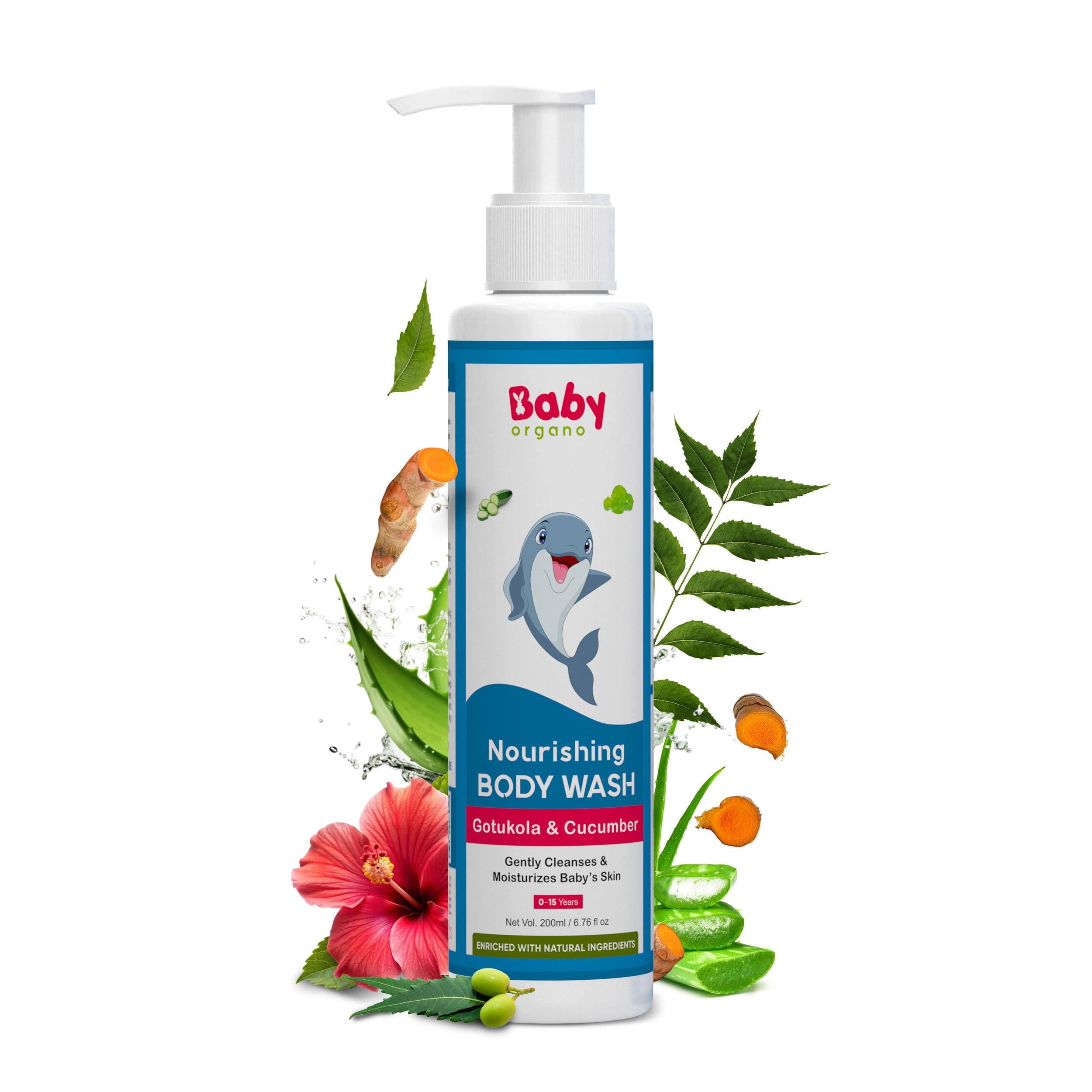 Babyorgano Baby Body Wash 200ml for Kids with Aloe Vera, Hibiscus & Neem, Cleanse Moisturize Head to Toe, All Skin Type, Paraben Free, FDCA Approved
