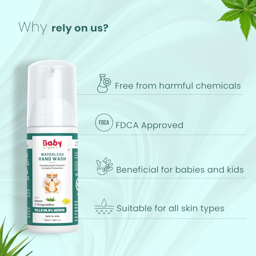 Babyorgano Non Alcoholic Foam Based Waterless Handwash for Kids, 100% Natural and Germ Protection Goodness of Aragvadha, Aloe Vera and Neem - 50ml