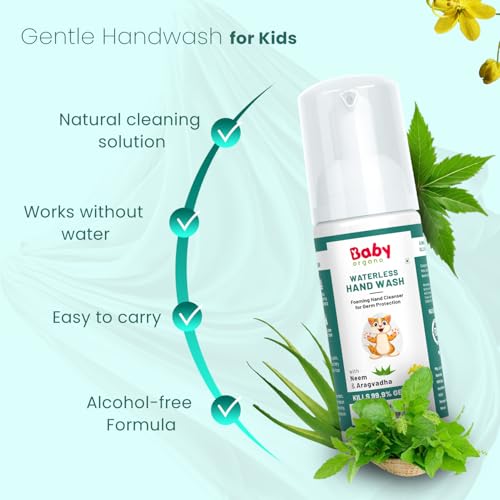 Babyorgano Waterless : Non-alcoholic gentle on delicate skin. Infused with Aragvadha Neem Aloe Vera Tulsi for germ protection & hydration. Keep hands clean safe and nourished. Ideal for & . No water needed.