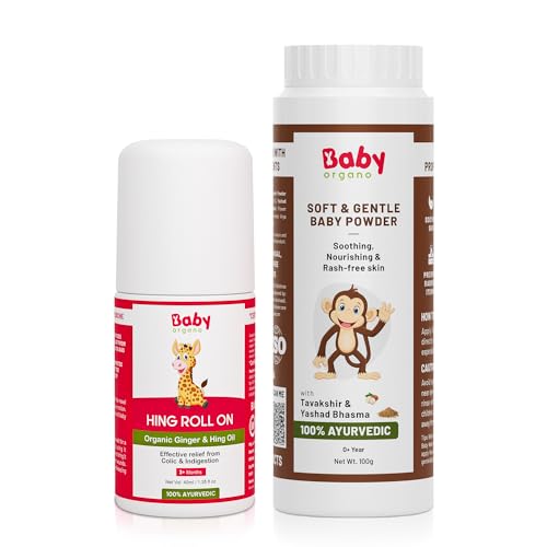 Babyorgano Baby Hing Tummy Roll-On 40ml & Baby Powder 100gm Combo Pack | Natural Care for Newborns