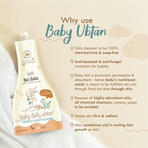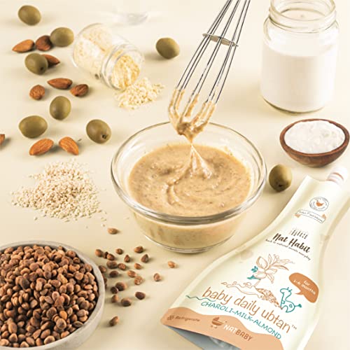 Nat Habit Baby Bath Ubtan - Daily Ubtan With Charoli Milk Almond For 1 Month to 6 Months Old Baby Cleansing & Nutrition, Chemical-Free & Soap Free Care of Babies (80gm, Pack of 1)