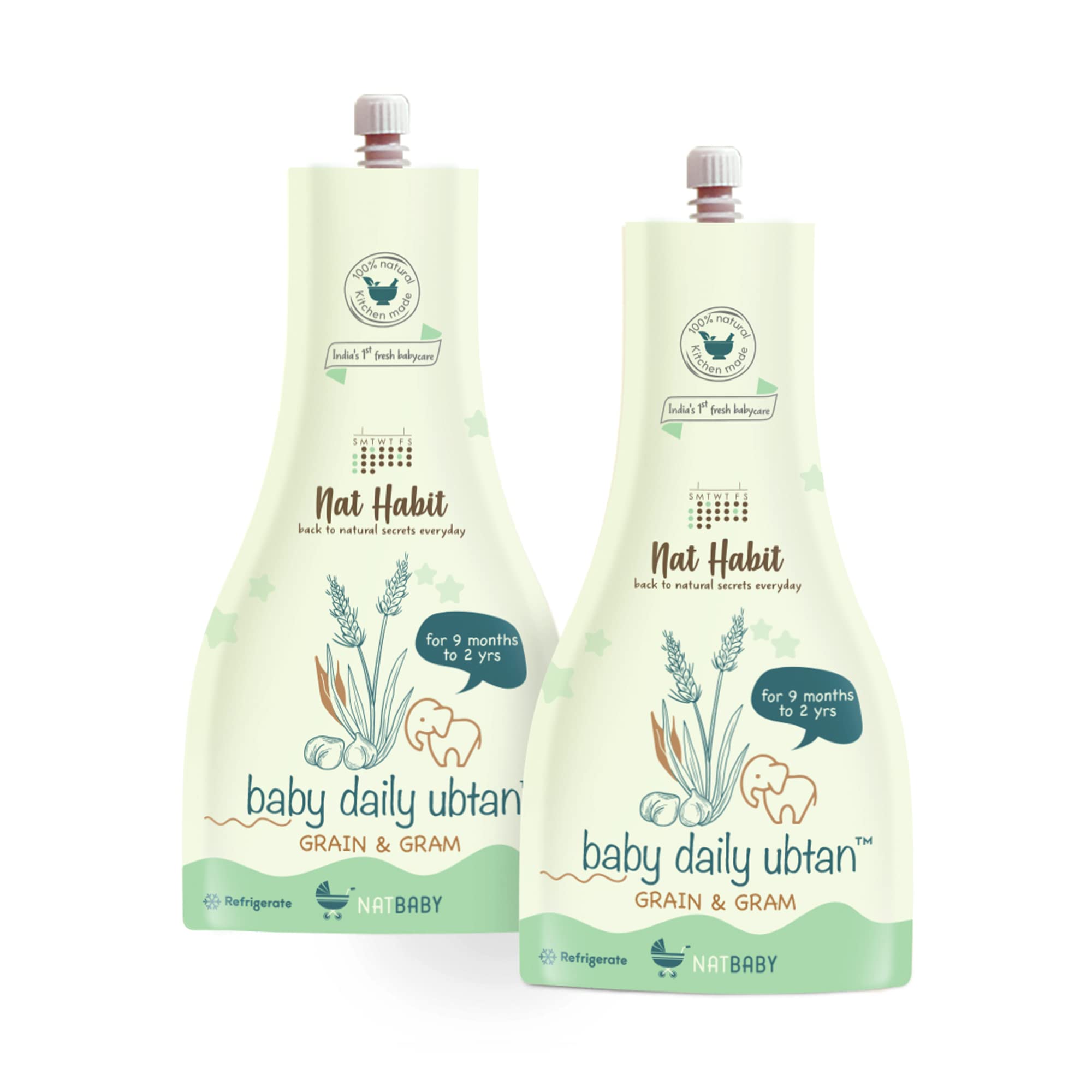 Nat Habit Baby Bath Ubtan - Daily Ubtan With Grain & Gram For 9 Month to 2 Years Old Baby Cleansing & Nutrition, Chemical-Free & Soap Free Care of Babies (80gm, Pack of 2)
