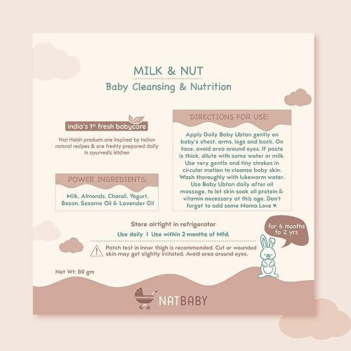 Nat Habit Baby Bath Ubtan - Daily Ubtan With Milk & Nuts For 6mth To 2 Years Old Baby Cleansing & Nutrition, Chemical-Free & Soap Free Care of Babies (80gm, Pack of 1)