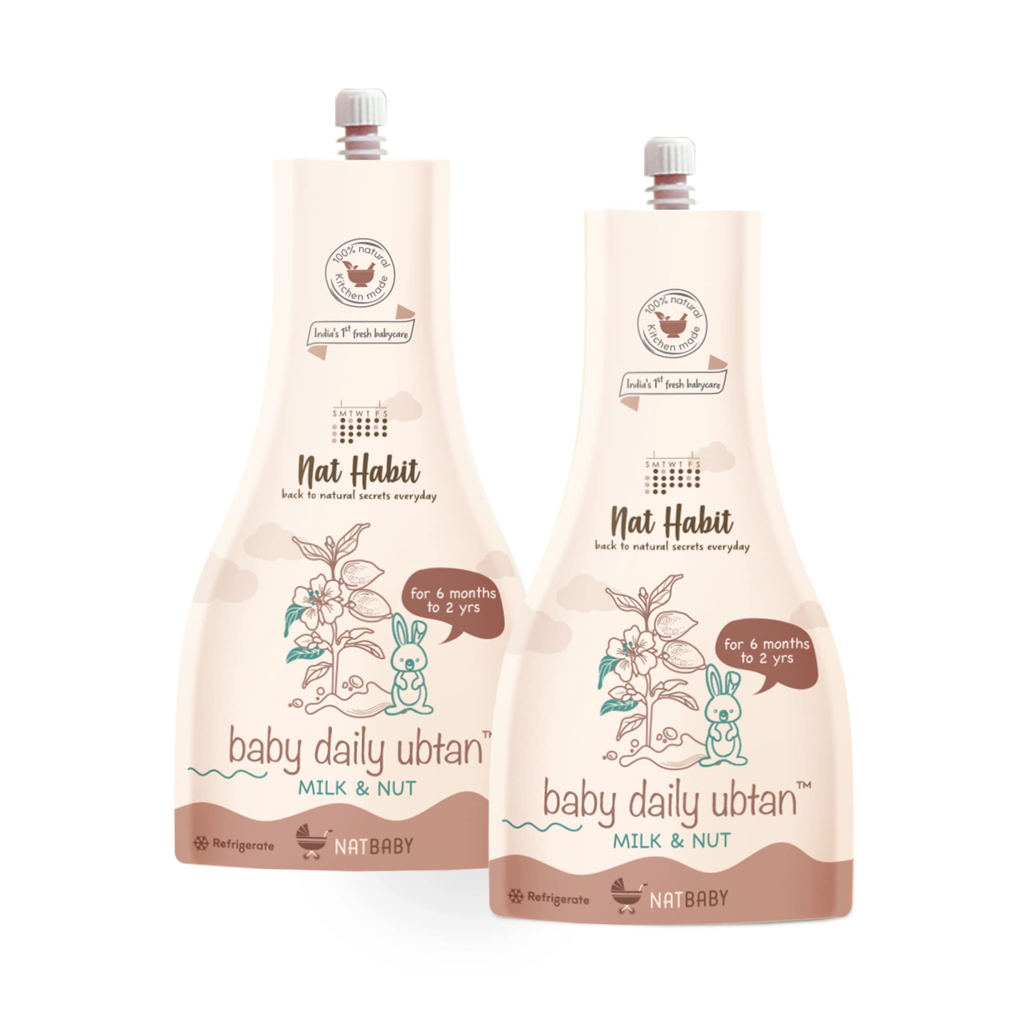 Nat Habit Baby Bath Ubtan - Daily Ubtan With Milk & Nuts For 6mth To 2 Years Old Baby Cleansing & Nutrition, Chemical-Free & Soap Free Care of Babies (80gm, Pack of 2)