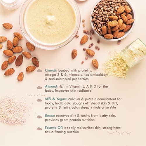 • Only cleanser to be 100% chemical-free & -free Suitable across all seasons. Use Ubtan daily after oil massage to let skin soak all protein & vitamin necessary at this age.
