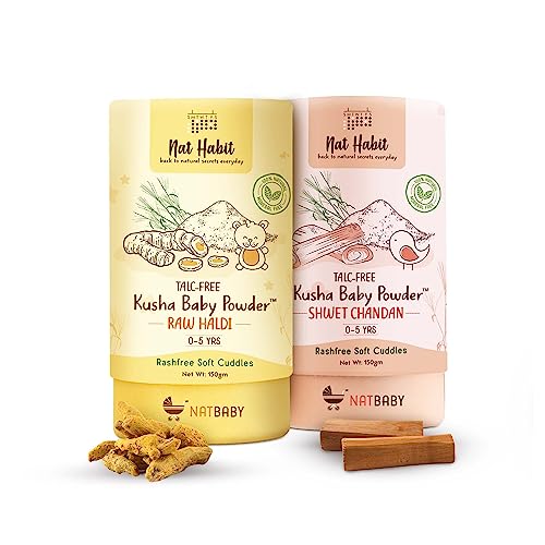 Nat Habit Raw Haldi & Shwet Chandan Kusha Baby Powder, Chemical Free & Rashfree Soft Protection, 0-5 Yrs - 150 g Each (Combo Pack of 2)