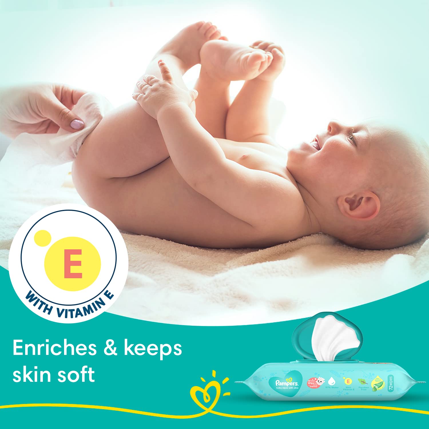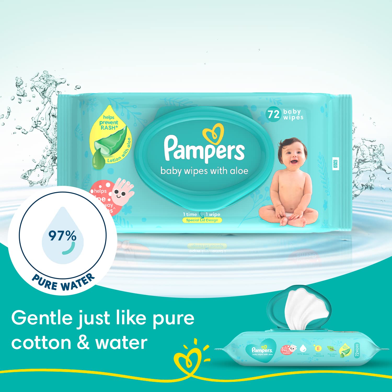 Every little miracle deserves gentle protection mothers & doctors have always trusted Pampers to provide the care. Presenting Pampers Wipes with Aloe which have the goodness of lotion with Aloe vera to protect against skin rashes & redness. Containing 97% pure water Pampers Wipes provide mild cleaning for 's supples skin just like cotton & water. Pampers wipes are safe as they are and infused with Vitamin-E. They help restore the natural pH of your 's skin keeg it healthy and nourished. Pampers wipes are thick soft and strong ensuring a perfect gentle cleaning for the 's skin.  Lastly the wipes come with a refreshing mild fragrance that you and your will surely love. Wet wipes tissues with lid 72 pcs combo pack.
