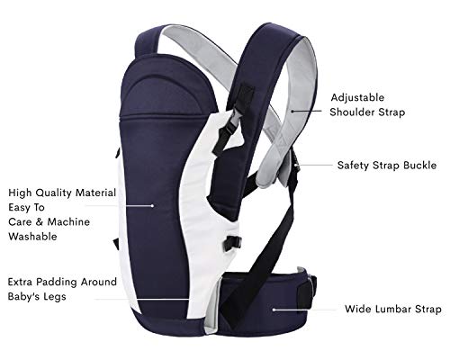 • Wide shoulder lumbar strap & adequate padding: Wide shoulder strap helps proper support and evens out weight on shoulders. Wide lumbar strap provides apt support to your waist and helps to carry your baby easily