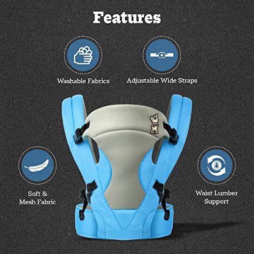 R for Rabbit Cuddle Snuggle New Baby Carriers Cum Kangaroo Bag, Ergonomic, Front/Back Position, Adjustable & Stylish Belt,3 Carry Position for 6m to 24m Kids, Max Weight up to 15 Kg (Blue Grey)