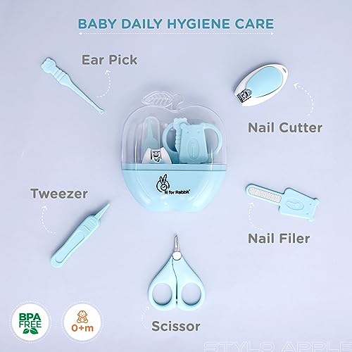R for Rabbit Stylo Apple New Born Baby 5 in1 Nail Grooming Kit for Baby Manicure Set with Kids Nail Cutter,Tweezer, Filer, Ear Pick and Scissors (Blue)