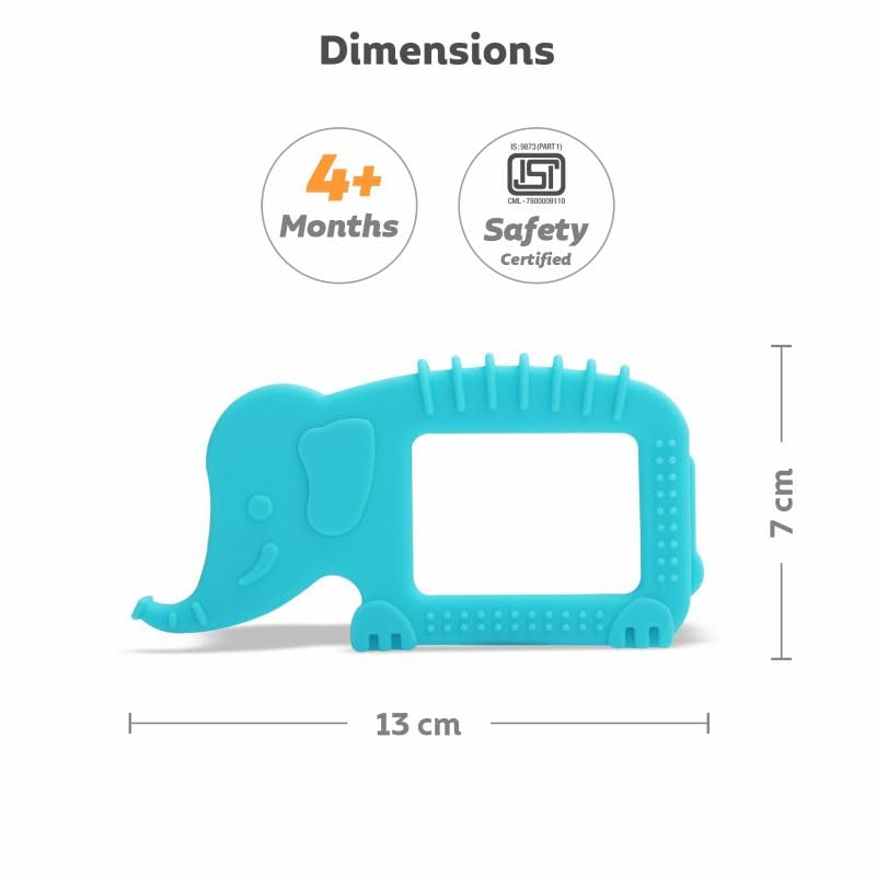 R for Rabbit Tiny Bites Safari Soft Silicone Teether for 4+ Months Baby BPA Free 100% Food Grade Teething Toys for Babies with Multiple Teething Surface & Soft Edges (Elephant Blue + Horse Orange)