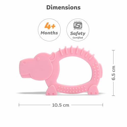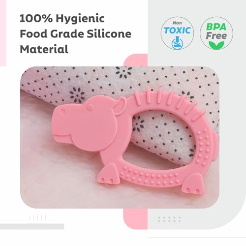 R for Rabbit Tiny Bites Safari Soft Silicone Teether for 4+ Months Baby BPA Free Food Grade Teething Toy for Babies with Multiple Snoothing Surface & Soft Edges (Hippo Pink)
