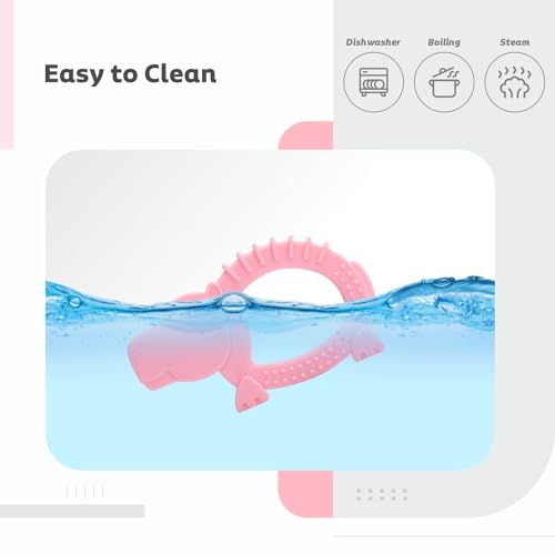 • Multiple teething surfaces: This teether has textured design which gives baby an interesting feel while they are chewing it