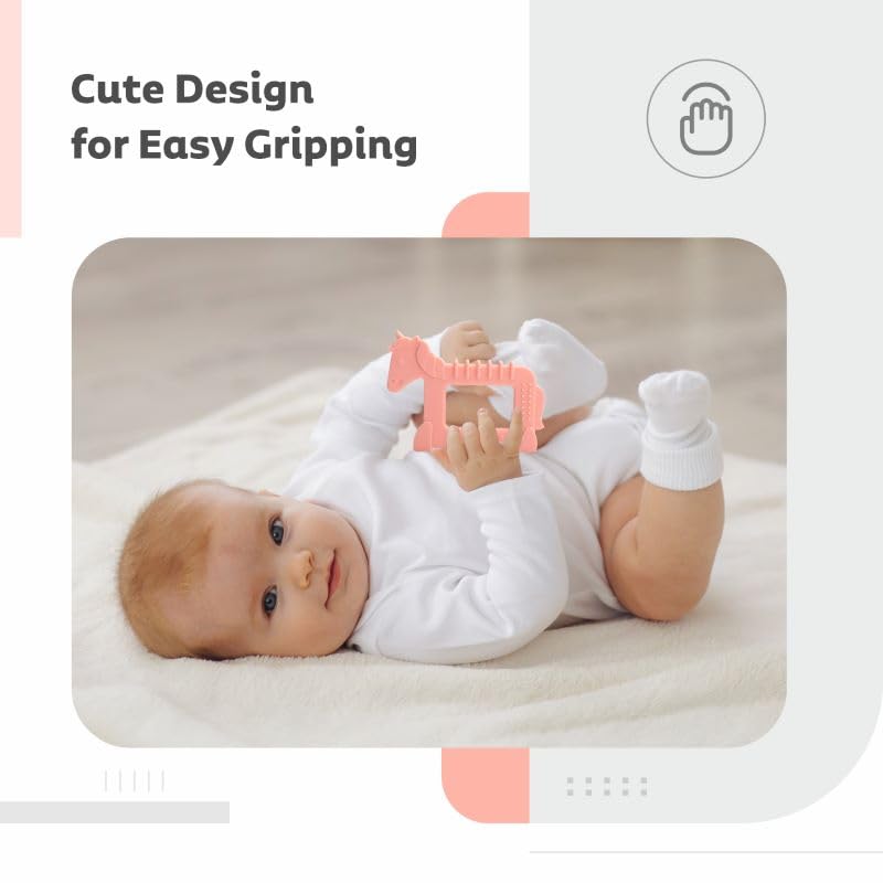 • Multiple teething surfaces: This teether has textured design which gives baby an interesting feel while they are chewing it
