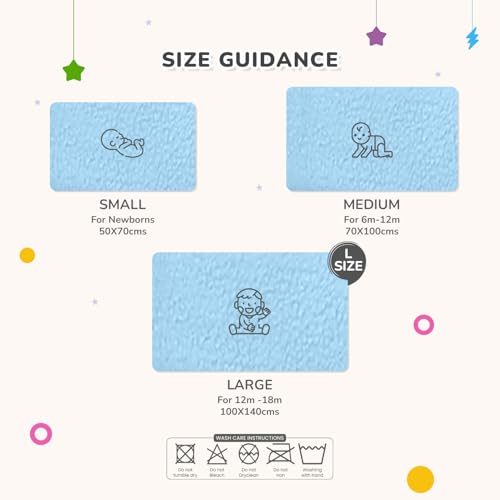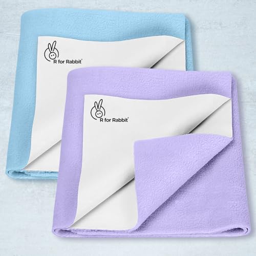 R for Rabbit Waterproof Quick Dry Sheet Bliss for Baby | Anti-Piling Fleece Breatheable Fabric Extra Absorbent Instant Dry Baby Bed/Cot Protector Mat (Size-L,Blue-Purple,Pack of 2)