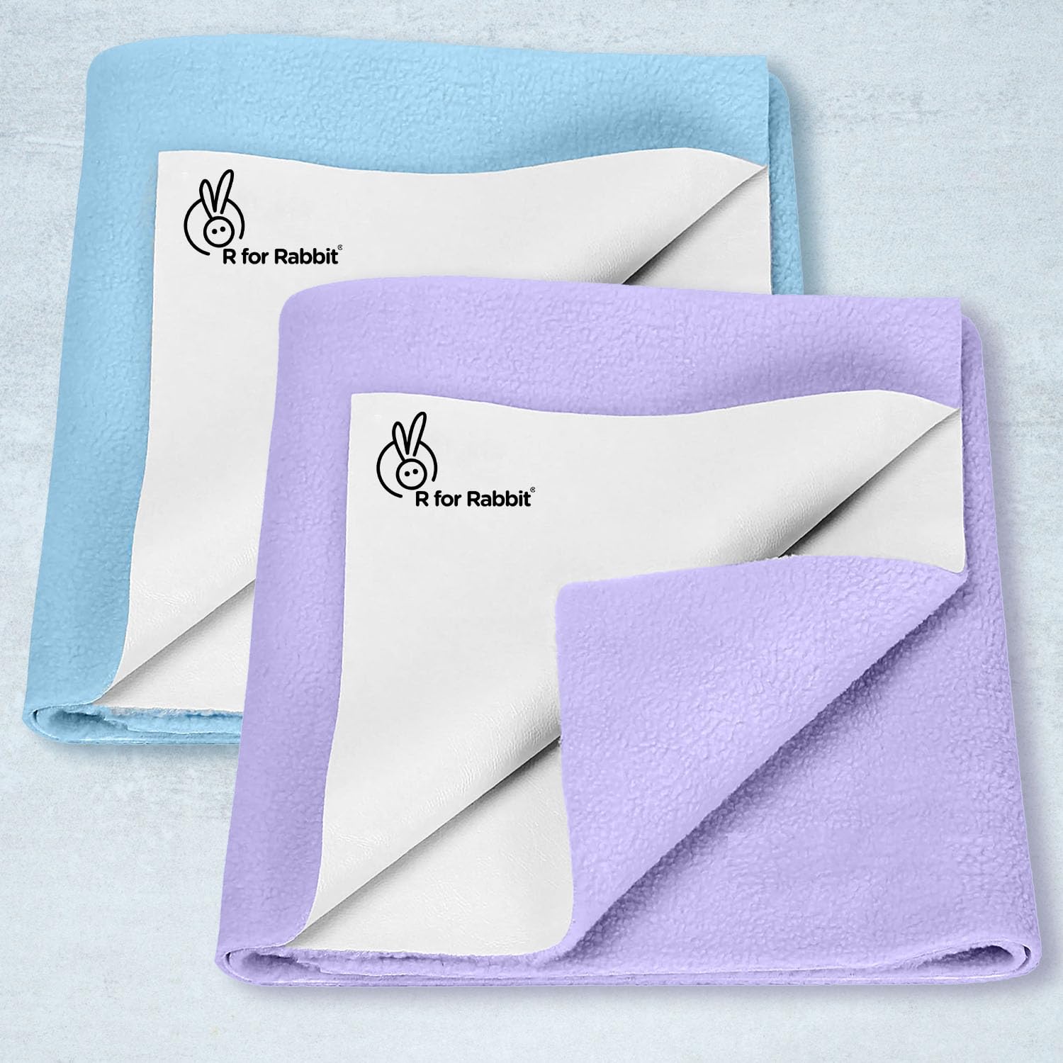 R for Rabbit Waterproof Quick Dry Sheet Bliss for Baby | Anti-Piling Fleece Breatheable Fabric Extra Absorbent Instant Dry Baby Bed/Cot Protector Mat (Size-M,Blue-Purple,Pack of 2)