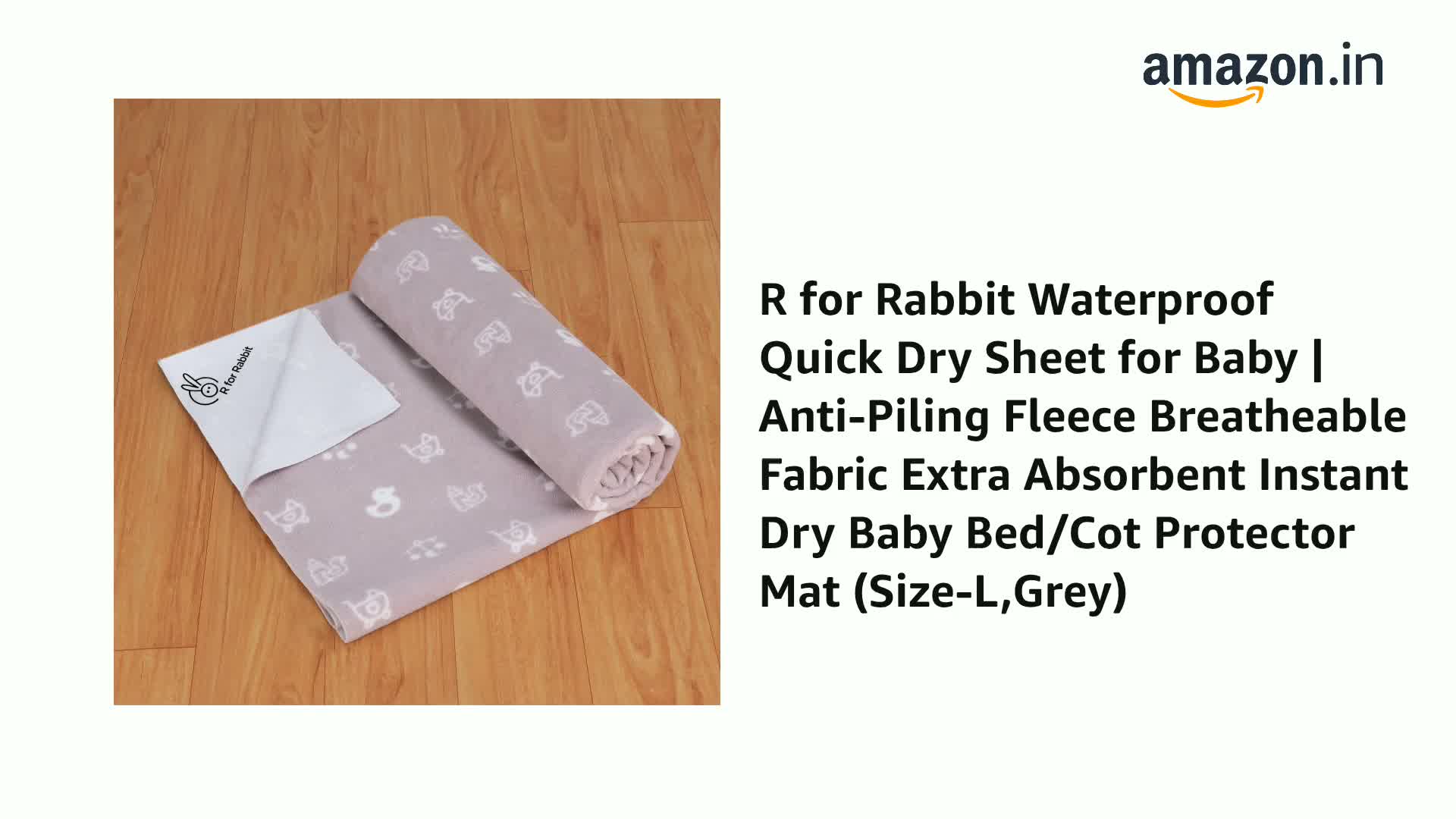 R for Rabbit Waterproof Quick Dry Sheet for Baby | Anti-Piling Fleece Breatheable Fabric Extra Absorbent Instant Dry Baby Bed/Cot Protector Mat (Size-L,Grey)