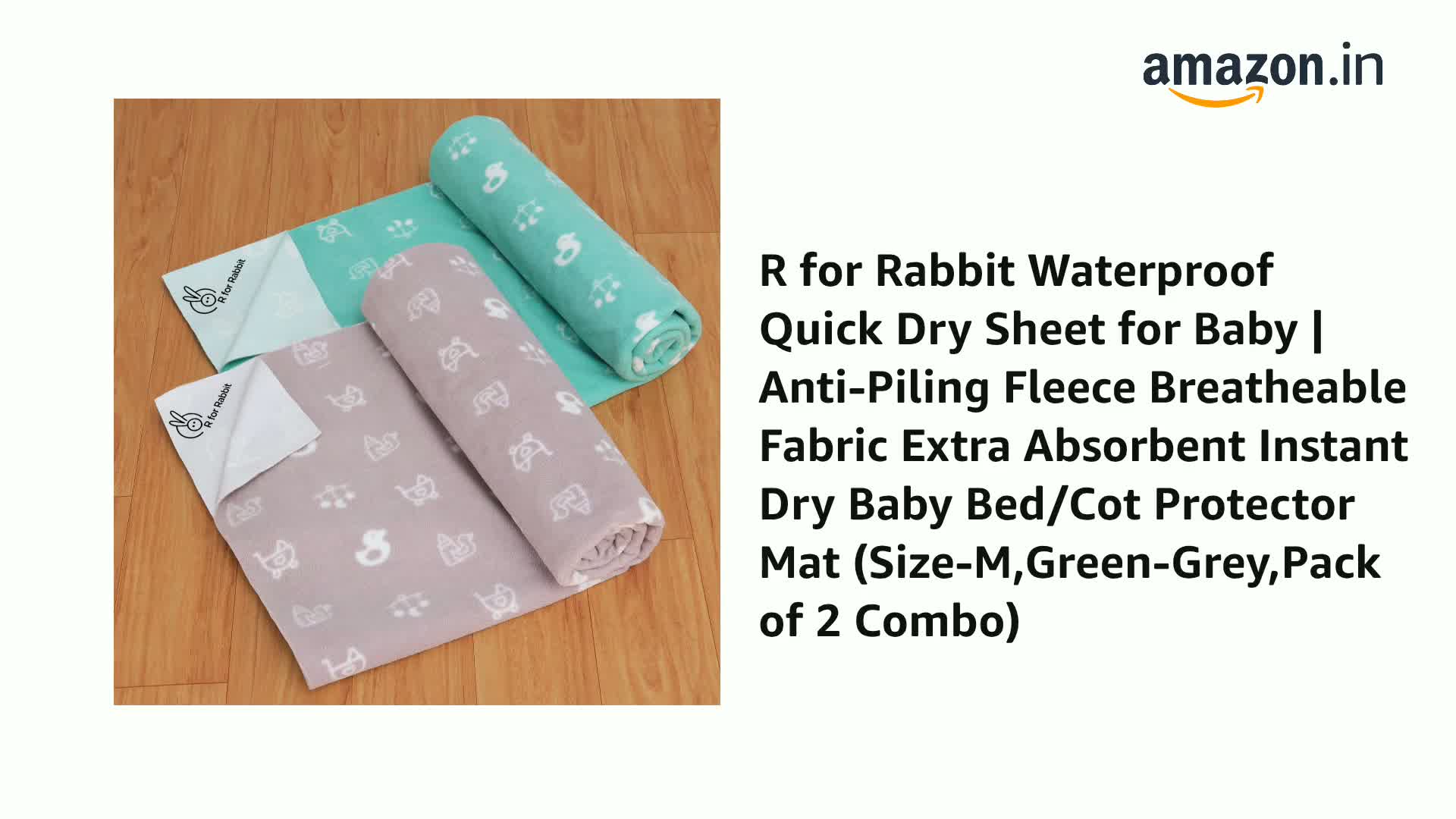 R for Rabbit Waterproof Quick Dry Sheet for Baby | Anti-Piling Fleece Breatheable Fabric Extra Absorbent Instant Dry Baby Bed/Cot Protector Mat (Size-M,Green-Grey,Pack of 2 Combo)