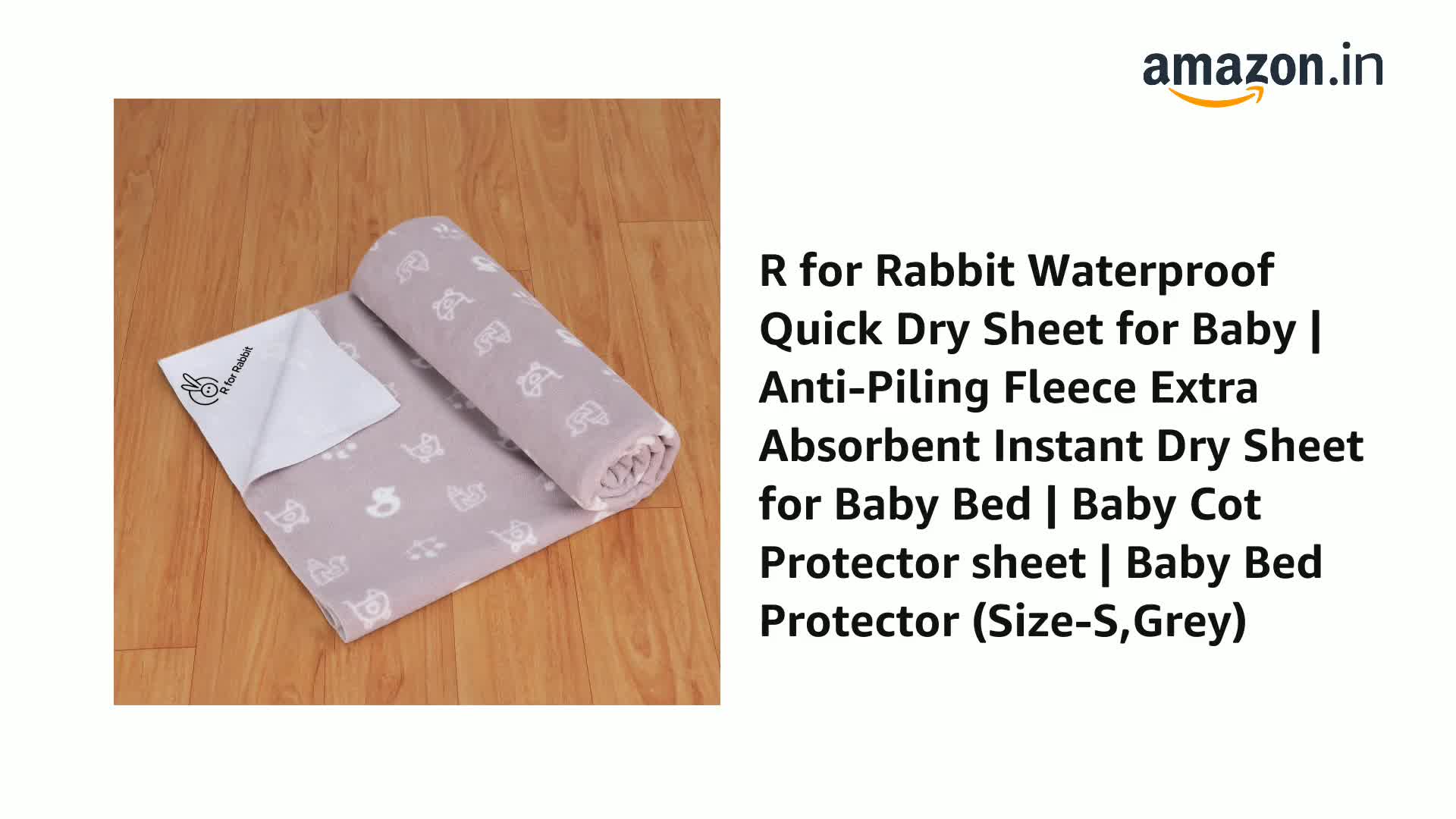 R for Rabbit Waterproof Quick Dry Sheet for Baby | Anti-Piling Fleece Breatheable Fabric Extra Absorbent Instant Dry Baby Bed/Cot Protector Mat (Size-M,Grey)