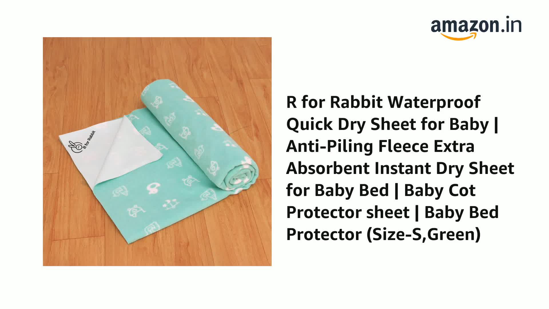 R for Rabbit Waterproof Quick Dry Sheet for Baby | Anti-Piling Fleece Breatheable Fabric Extra Absorbent Instant Dry Baby Bed/Cot Protector Mat (Size-S,Green)